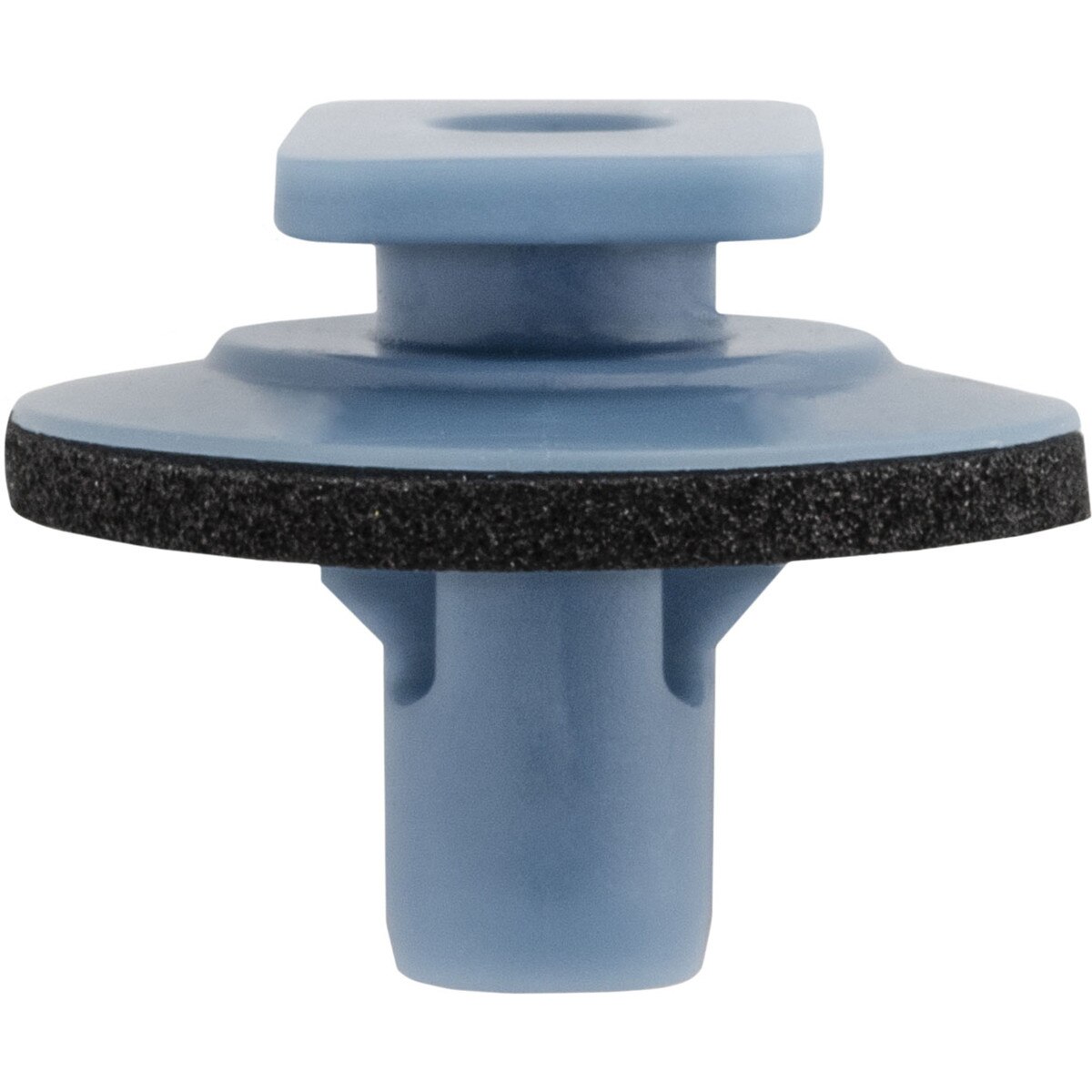Nissan, Liftgate Moulding Clip with Sealer, Blue Nylon, Top Head Size: 10mm x 15mm, Bottom Head Diameter: 19mm, Stem Length: 10mm, Fits into 6mm Hole, Overall Length: 15mm, Nissan Juke 2001 – On, Nissan # 90990-1KA0B