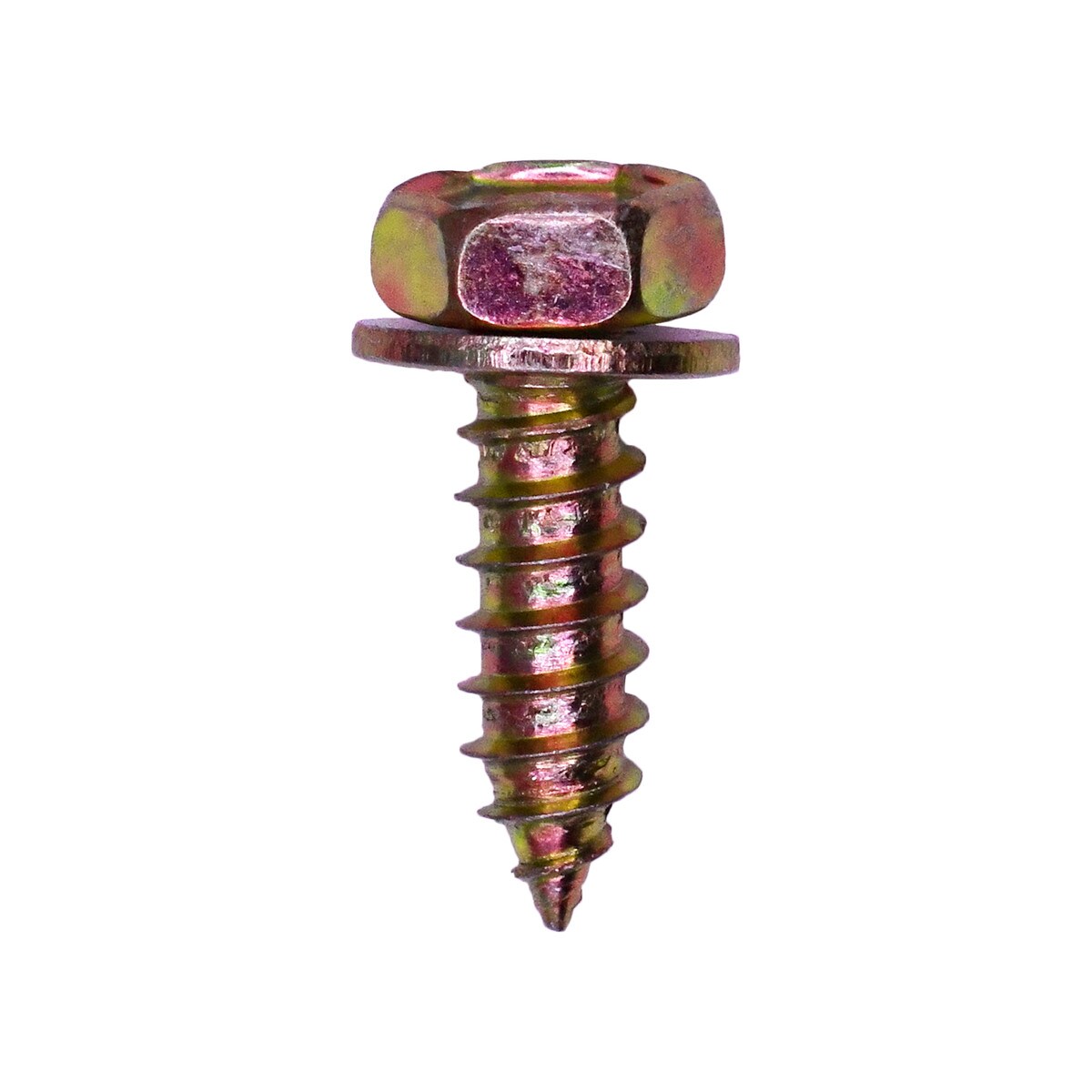 BMW, Hex Head Tapping Screw with Sems® Washer, Yellow Zinc, M4.8-1.61 x 16mm (#10-16 x 5/8”), Washer Diameter: 10mm, Hex Size: 8mm, BMW 318i, 318is 1998 – 1992, 320i 1995 – 1993, 1983 – 1977, 323i 2000 – 1998, 325i, 325is 1996 – 1991, 328i 2000 – 1996, 330i, 330Ci 2006 – 2001, 524td 1986 – 1983, 525i 2003 – 2001, 1996 – 1989, 528e 1988 – 1982, 528i 2000 – 1996, 1981 – 1979, 530i 2003 – 2001, 1996 – 1993, 1978 – 1975, 533i 1985 – 1983, 535i 1993 – 1985, 540i, 540iP 2003 – 1993, 630CSi 1977, 633CSi 1985 – 1978, 635CSi 1989- 1985, 733i 1985 – 1975, 735i, 735iL 1992 – 1985, 740i, 740iL 1994 – 1993, 750iL 1993 – 1988, 850Ci 1993 – 1991, M3 2006 – 1994, M5 2003 – 2000, 1993 – 1991, 1988 – 1987, Z3 2002 – 1996, Z3 2002 – 1996, Z4 2008 – 2003, BMW # 07-11-9-916-945